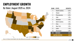 Nevada’s job growth has dropped to just 0.3% year-over-year, ranking 45th in the nation. That’s a big slowdown from the post-pandemic hiring surge we saw in 2022 and 2023.